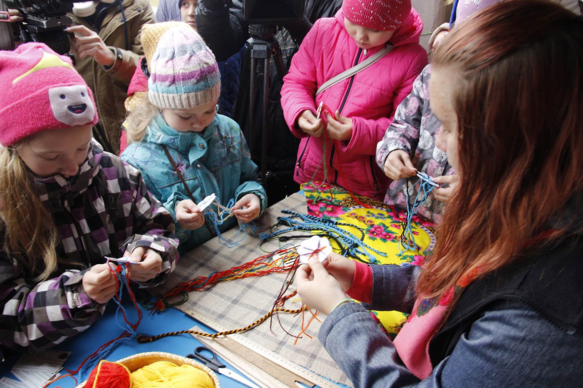 Девочки повзрослее окружили Анастасию Мажарову, которая делилась секретами изготовления фенечки. Главное – быть внимательнее и не спутать цветные шерстяные нити, переплетая вырезанный из бумаги цветок. А на мастер-классе «Народная роспись» важно было бережно обращаться с кисточками и красками.